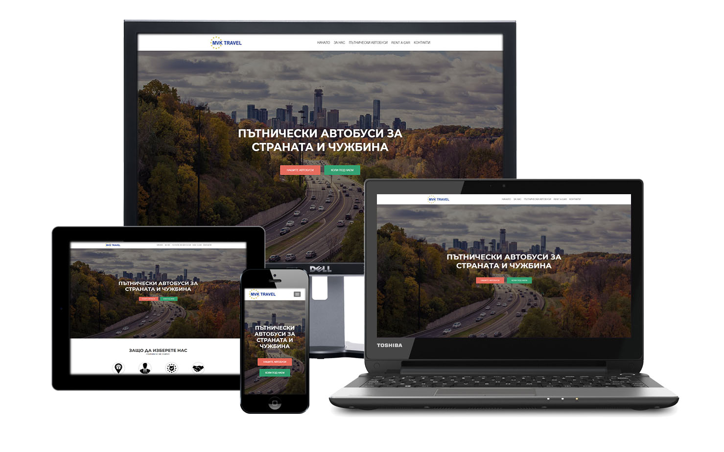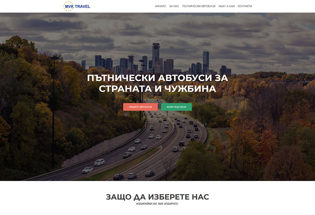 Възможности: Страници с предлаганите от фирмата автобуси, микробуси и Rent a Car, Форма за обратна връзка, Пълен административен контрол над съдържанието, Адаптивен (responsive) дизайн, SEO оптимизация