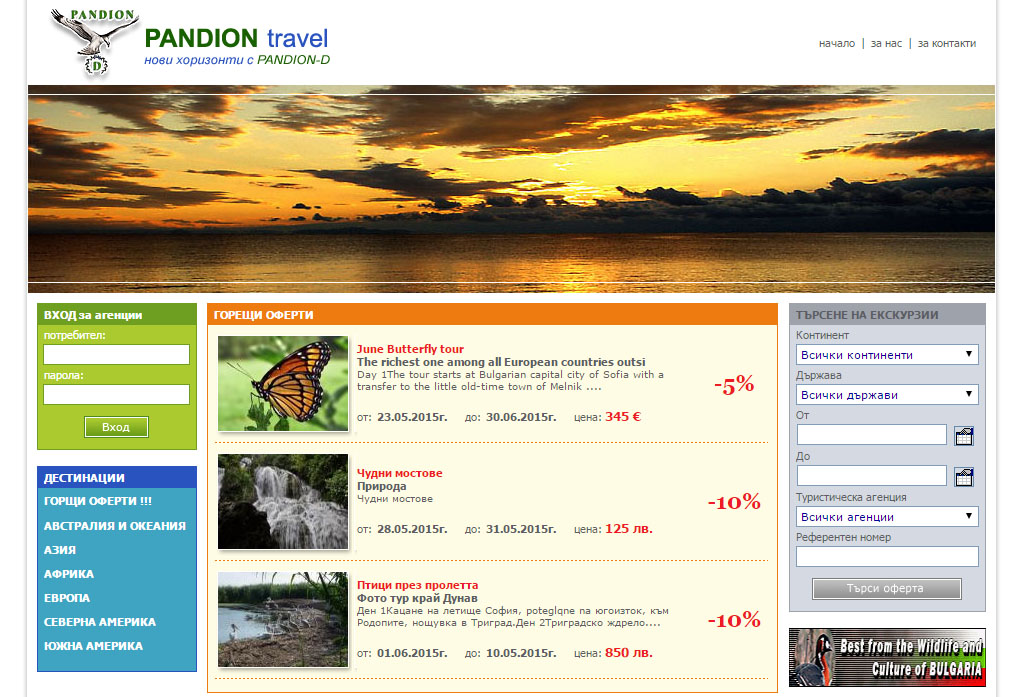 Възможности: Динамичен уеб сайт с клиентска и административна част, съобразен със спецификата на дейността, търсене и автоматизирано управление на актуалността на офертите