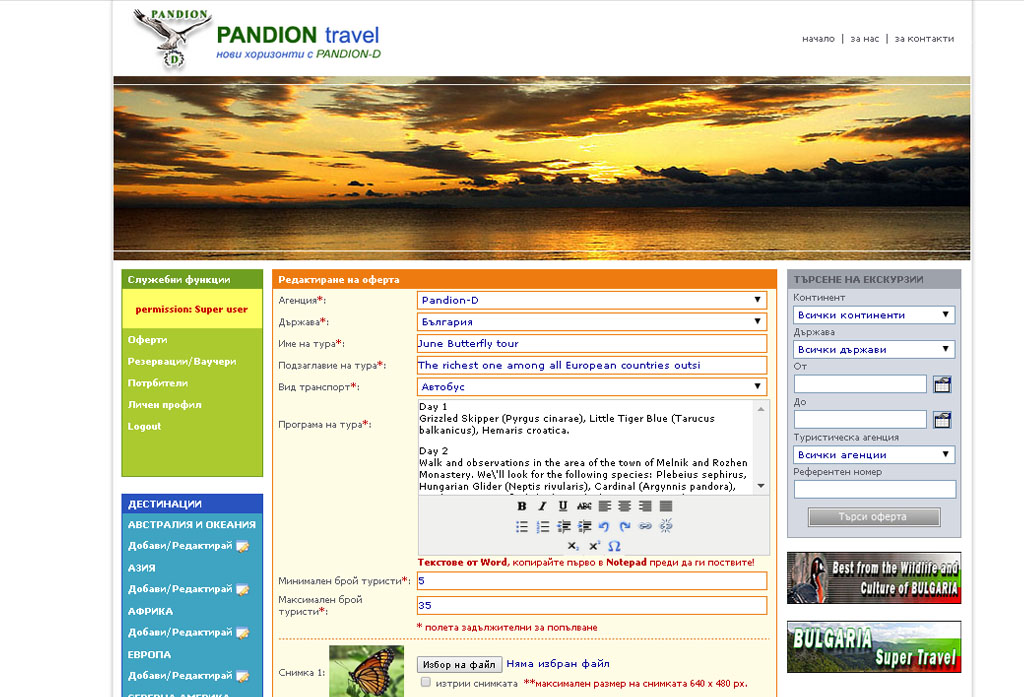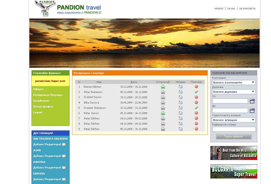 Възможности: Динамичен уеб сайт с клиентска и административна част, съобразен със спецификата на дейността, търсене и автоматизирано управление на актуалността на офертите