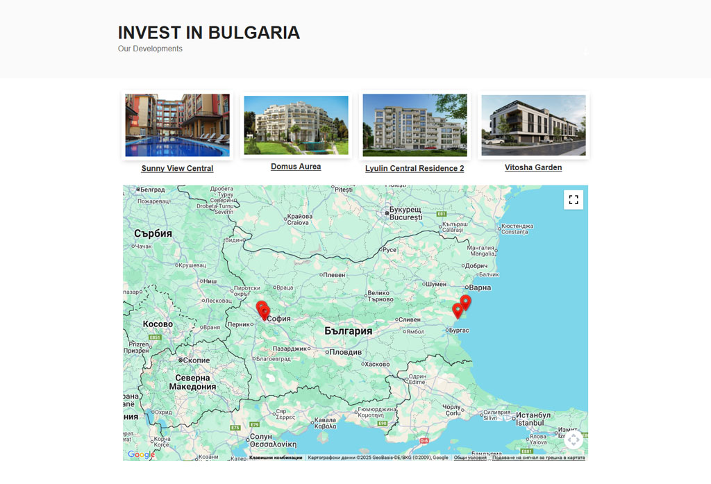 Изработване на уебсайт: Invest in Bulgaria – Our Developments