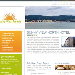Изработване на уебсайт: хотелски комплекс Sunny View North Клиент: Invest inBulgaria Ltd. Описание: хотелски комплекс Възможности: Информационни страници, Фотогалерия, Форма за резервации Година: 2007